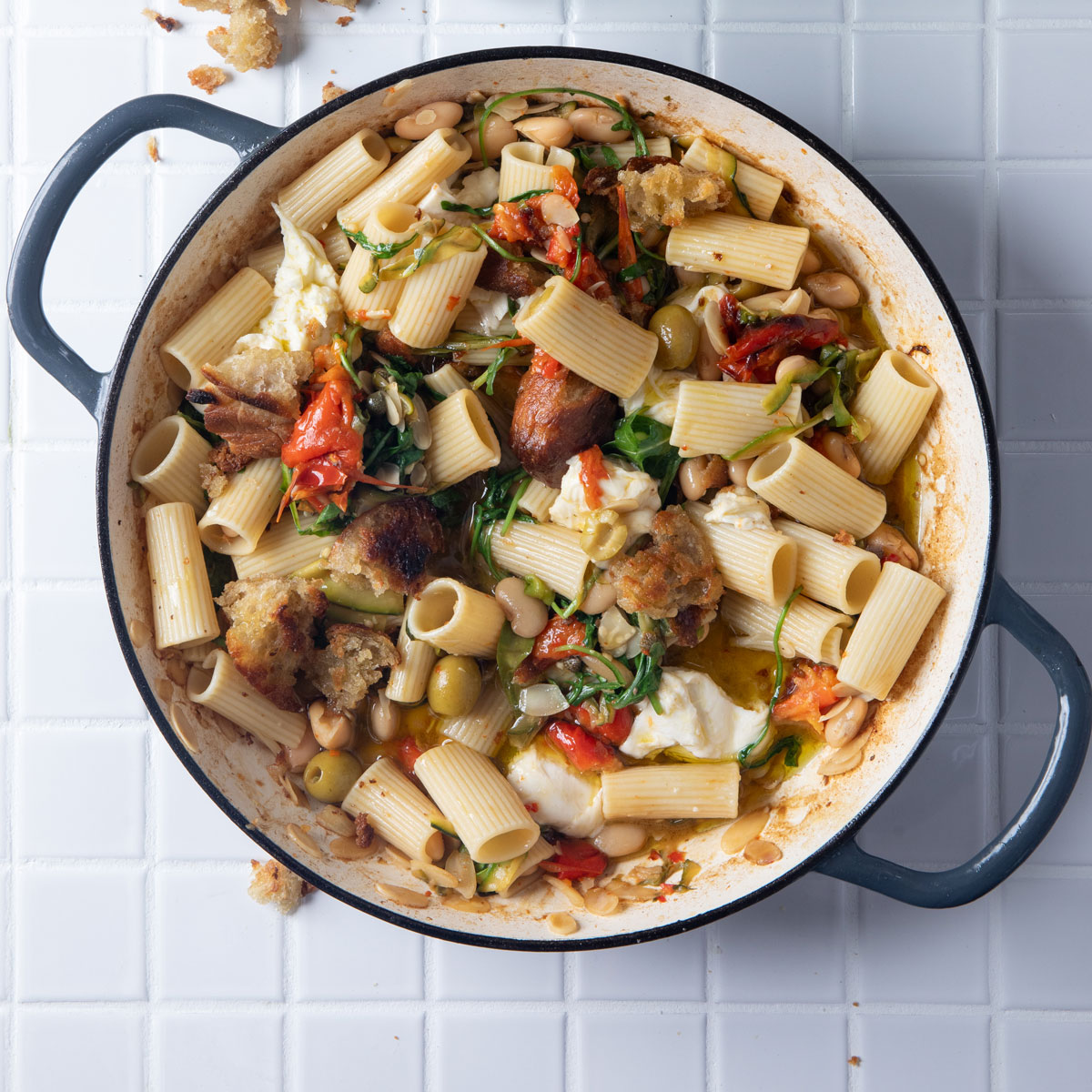 This pasta by Abi is a special one – it's a completely improvised dish made using leftover ingredients from a TASTE shoot. Not only is it an inspired recipe, but it also gave our audience a peek into the inner workings of a set day when we create our content. We hope it also inspired you to get creative and make your own combinations with ingredients that you have in your kitchen.