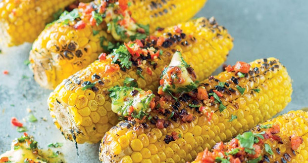Dry-fry 100 g finely chopped chorizo until crisp. Fold into 100 g softened butter with 25 g chopped coriander, 1 chopped chilli and season to taste with sea salt and freshly ground black pepper. Chargrill 6 blanched mielies, then serve hot with the chorizo butter.