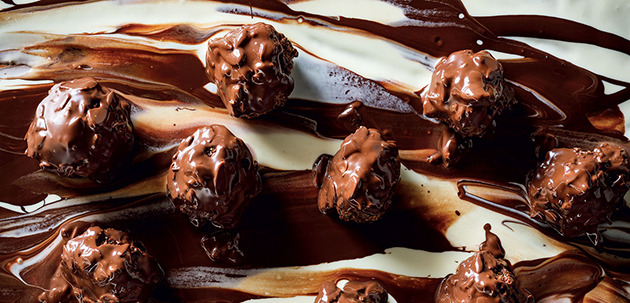 So quick and simple! Spread a layer of melted white chocolate, then dark chocolate and finally chocolate cream cheese. Voila! The easiest dessert ever made. Find the triple-chocolate dessert recipe here.
