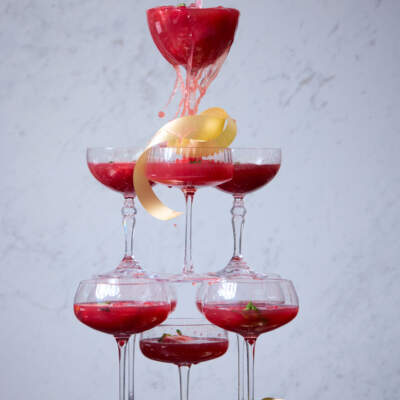 5. To assemble the cocktail, place a scoop of sorbet into a coupe glass, pour over the Prosecco and garnish with an orange slice or orange zest. Serve with a spoon.
