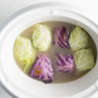 Combine 500 g chicken or pork mince, 1 T roughly chopped fresh coriander, 1 t ground ginger and salt and pepper and mix well. Divide the mixture into 10 equal portions. Blanch 5 red cabbage and 5 Spitzkoppe cabbage leaves in boiling water. Place a portion of filling on each cabbage leaf, tightly fold in the sides and roll up. Place the cabbage rolls in a slow-cooker. Cover with 2 cups chicken stock and cook for 2 hours on high or 6 hours on low. Serves 6–8