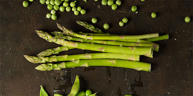 If you’re working with thicker, hardier stalks, simply snap o the woody ends, steam and dip into something decadent like garlicky aïoli. If you've gotten your hands on the tender, mini ones, spread a sheet of readymade puff pastry with red pepper pesto, pile on the asparagus, goat’s cheese and basil, and bake until crispy.