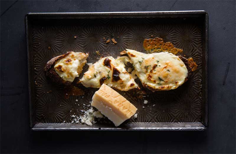 To make a Grana Padano Welsh rarebit, place 2 T butter and 2 T fl our in a saucepan over a medium heat and cook until the butter has melted. Whisk in ½ cup cream until the sauce thickens. Season with 1 t Dijon mustard and 1 t Worcester sauce and add a generous handful of grated Grana Padano. Toast slices of bread on both sides, top with the sauce, slices of Grana Padano and thyme and grill until bubbling.