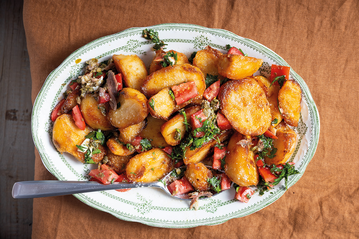 "I haven't met a roast potato I didn't like, so obviously my first pick from the March/April issue is Abi's twice-cooked roast potatoes in tomato salsa. They're crispy and golden on the outside and fluffy on the inside. The addition of the tomato salsa is so unexpected but it completely works!"